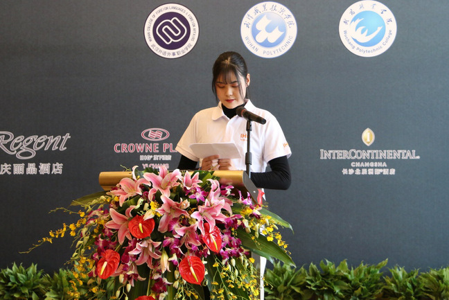 武汉职业技术学院“洲际英才班”学生代表姚雅馨在开班仪式上发言,向洲际酒店集团以及学校的合作培养表示感谢,希望能够在英才培养学院的学习和实践中加深对洲际集团企业文化的了解,提升沟通技巧、语言能力和综合素养,希望毕业后能加盟洲际酒店集团,努力成长为优秀的洲际人。