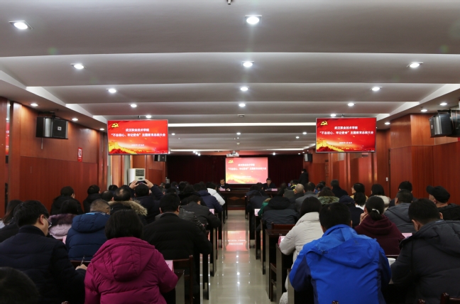 何爱军强调,“不忘初心、牢记使命”是加强党的建设的永恒课题,是全体党员干部的终身课题,只有“进行时”,没有“完成时”。学校要夯实思想根基,要加强政治建设,持续深入学习贯彻习近平新时代中国特色社会主义思想,切实增强“四个意识”,坚定“四个自信”,坚决做到“两个维护”;要勇于自我革命,要狠抓整改落实,经常性检视和解决违背初心使命的问题,把主题教育形成的经验做法转化为有效机制,推进“不忘初心、牢记使命”主题教育常态化、长效化、制度化。