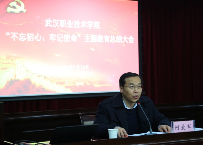 何爱军对学校主题教育开展情况和取得的成效给予了充分肯定。他表示,主题教育开展以来,武汉职业技术学院党委深入学习贯彻习近平新时代中国特色社会主义思想,坚决贯彻落实习近平总书记关于开展主题教育的系列重要指示精神和党中央部署要求,认真落实省委、省委教育工委主题教育领导小组安排,精心组织开展主题教育各项任务,紧密结合学校实际,始终聚焦主题主线,牢牢把握根本任务,全面贯彻落实总要求,突出目标导向和问题导向,学习教育系统深入、调查研究求真务实、检视问题精准深刻、整改落实扎实有效、切实做到“四个到位”;党员干部的理想信念进一步坚定,履职热情进一步高涨,群众观念进一步树立,斗争精神进一步增强。