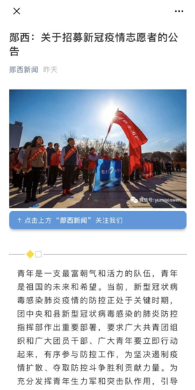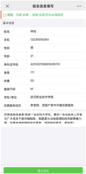 林柱报名参加郧西县新冠疫情防控志愿服务活动