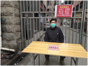曹辰昊值守疫情劝返点,引导居民注意疫情防控
