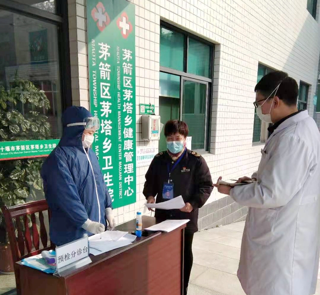 赵子健母亲(中)在茅塔乡卫生院现场督导