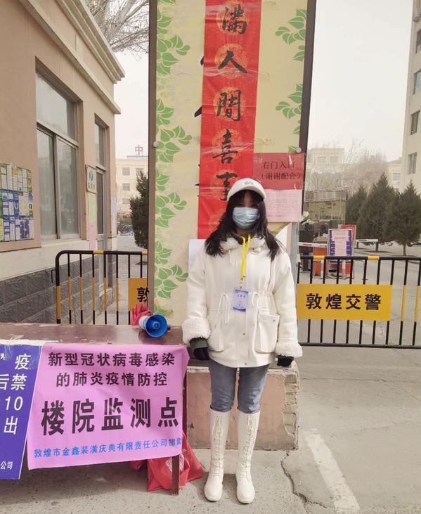 惠雯主要的工作是手持移动扩音小喇叭,每天不间断穿梭在小北街社区各楼栋,向居民反复播报小区疫情防控最新信息,宣传防控知识和防护措施,提醒居民“安心居在家里,不走亲访友,不拜年聚餐,勤洗手、多通风,出门戴口罩。”