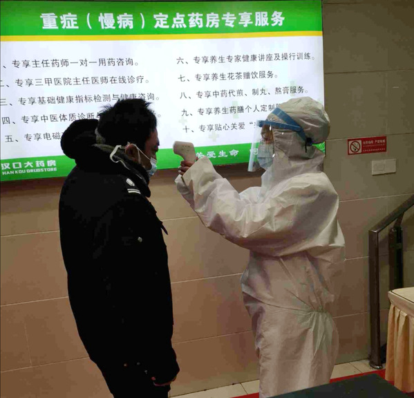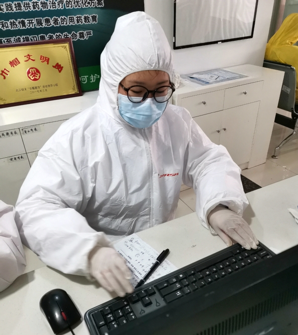 “在这个疫情防控关键时期,每天的工作都要格外严谨、细致,稍不注意就担心‘中招’。”郑鑫俐向辅导员介绍,“武汉很多医院专门设有发热门诊,重症及慢病患者为避免交叉感染就直接到药房取药,在药房重症(慢病)定点专区服务,前来取药的患者本就比普通购药的顾客要特殊。我们除了备好药,还要为前来取药的患者测量体温、询问登记患者有关信息,并结合专业知识指导患者后期康复注意事项,强调做好自我防护,组织顾客有序进店。”