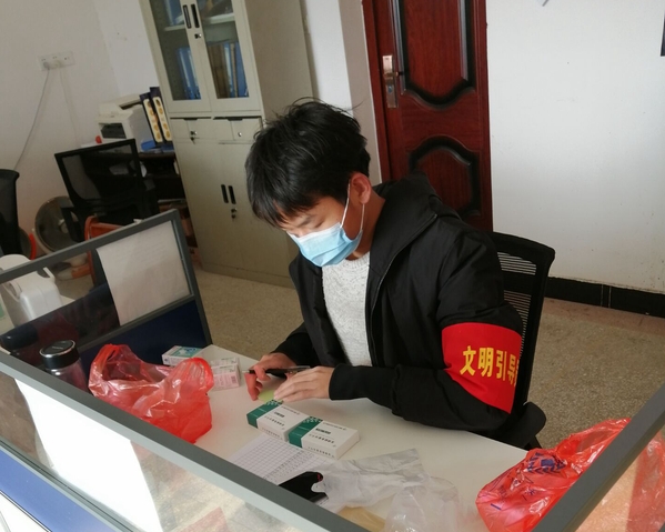 罗品超每天八点多到村委会办公室,协助村委会工作人员采购村民所需药品。随后,骑着电动车挨家挨户敲响村民的家门,不厌其烦地登记体温,宣传防疫知识,布正司湾、李家铺……村里的每一个小队,都留下了他的脚印。他说:“虽然工作量大,身体疲惫,但心里是充实的。有时去村民家做登记,没有条件伏案记录,只好将登记表放在腿上填写信息;有时遇到村民热情相待,递给你一杯水或者两个砂糖橘,这些暖心的举动让我觉得有无数人正在用自己的方式对这次疫情防控给予支持。”