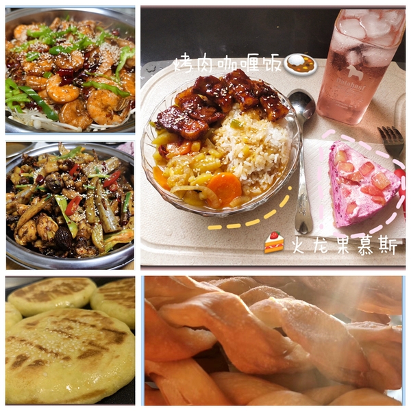 家务劳动干起来:造价19301班唐韵迪、数媒18304班赵文琦(右上图)厨艺展示