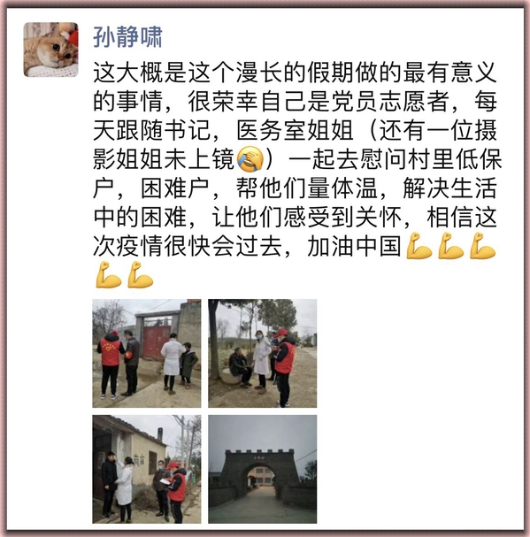 孙静啸在朋友圈记下疫情防控志愿服务感想