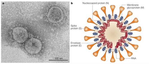 新冠病毒粒子外包脂质双层膜,膜表面有三种糖蛋白:刺突糖蛋白(S,Spike Protein,是细胞受体结合位点、与细胞膜融合作用位点和主要抗原位点);小包膜糖蛋白(E,Envelope Protein,较小,与包膜结合的蛋白);膜糖蛋白(M,Membrane Protein,负责营养物质的跨膜运输、新生病毒出芽释放与病毒外包膜的形成)。病毒核衣壳内最重要的蛋白之一就是核衣壳蛋白(N,Nucleocapsid Protein),主要负责RNA的复制功能。核衣壳蛋白(N蛋白)常作为新型冠状病毒诊断检测工具,是新冠病毒快速诊断试剂核心原料。