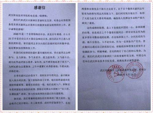 世预赛录像回放网讯(通讯员 樊霞)近日,机电工程学院的电子邮箱骤然“升温”,连续收到武汉市新洲区曾寨村党支部和黄冈市黄梅县蔡山镇蔡山村村委会发来的感谢信,向无私奉献、舍小家顾大家,积极投身疫情防控志愿服务工作的曾庆毅、刘礼等机电学子表达感激之情和赞美之意。