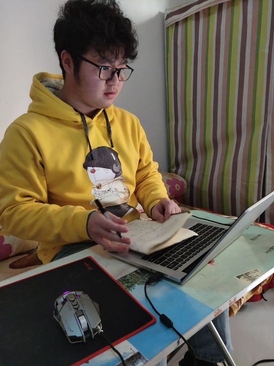 “滴滴,上课了……”手机传来上课闹铃声,李云龙赶紧打开电脑学习起来,纸质笔记本上被行云流水般地记载满满。