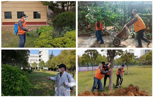 4月初,后勤服务中心物业管理部门按照学校党委和后勤服务中心班子提出的要求,召开视频会议,确定宣传动员优化兵力、条块结合精准施力、区域突击全面发力的“三力工作法”。随后,组织近40名物业“尖兵”,在关山校区开展室内室外环境消杀、垃圾站和窨井沟渠清理等防疫工作,以及楼栋保洁、草坪修剪、植物养护及病虫害防治、杂物清运、共享单车整治等整治校园环境系列优化活动。在活动中,物业“尖兵”们展现了高度负责的主人翁精神、吃苦耐劳精神、共同担当的团队协作精神、敢打硬拼的奋斗精神,为深入开展爱国卫生运动打下了坚实基础。