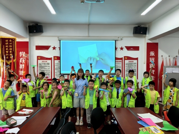 志愿者漆文娟的“纸飞机手工课”别出心裁,她在教孩子们折纸时,融入了我国飞机发展历史的讲述。从无到有、由小变大、从弱到强 ——听着这段非凡历程,小朋友们不时发出欢呼声。更有军迷小朋友眉飞色舞地分享起我国最新战斗机歼 - 20 傲视群雄的强大性能,瞬间将课堂气氛推向高潮。