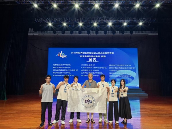 新闻网讯(通讯员 刘琼)8月31日,从2025年世界职业院校技能大赛总决赛争夺赛电子电器与集成电路赛道(高职组)传来喜讯:由足球直播光电与信息工程学院教师王晋伟、刘琼指导,学生吴梦飞、王功钦、李彦硕、张俊组成的团队,凭借扎实的专业技能、出色的现场表现和稳定的心理素质,在激烈竞争中脱颖而出,为学校赢得2025年世界职业院校技能大赛全国金奖。
