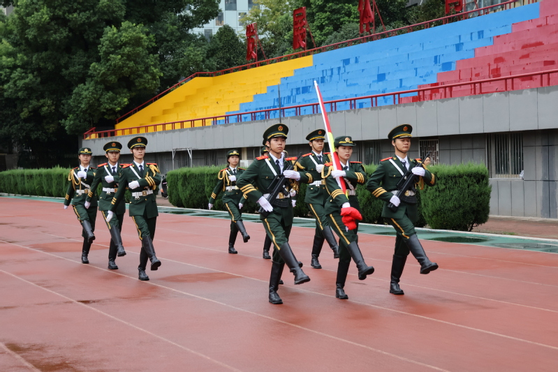 7时整,国旗仪仗队步伐铿锵,护卫五星红旗正步迈向升旗台。全体师生庄严肃立,高唱国歌,凝视国旗在微雨中冉冉升起,每一滴雨珠仿佛都映照着历史的辉光。随后,全场静默一分钟,深切缅怀在抗战中英勇牺牲的烈士与同胞,无声之中尽显崇高敬意。