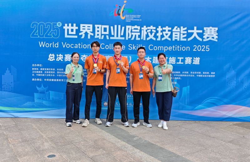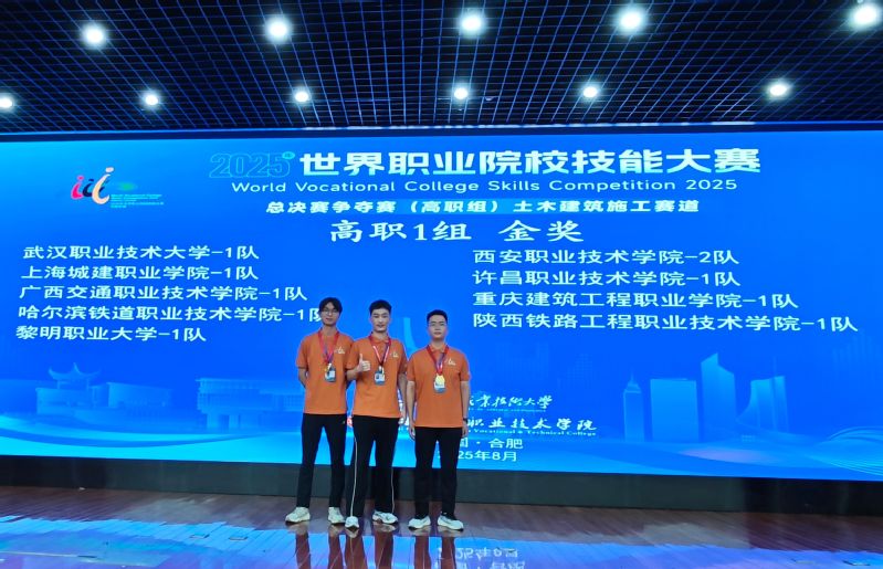 新闻网讯(通讯员 武敬)8月31日,世界职业院校技能大赛总决赛争夺赛土木建筑施工赛道(高职组)在安徽合肥落下帷幕。来自全国28个省(自治区、直辖市)的154支代表队、600余名选手同台竞技。经过激烈比拼,足球直播代表队成功登顶——由建筑工程学院教师赵亮领队,江俐敏、王冰担任指导教师,建筑工程技术专业学生周想、顿道坤、李俊华组成的参赛团队,凭借前瞻性的课题设计、扎实的专业功底与出色的现场表现荣获全国金奖。