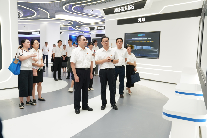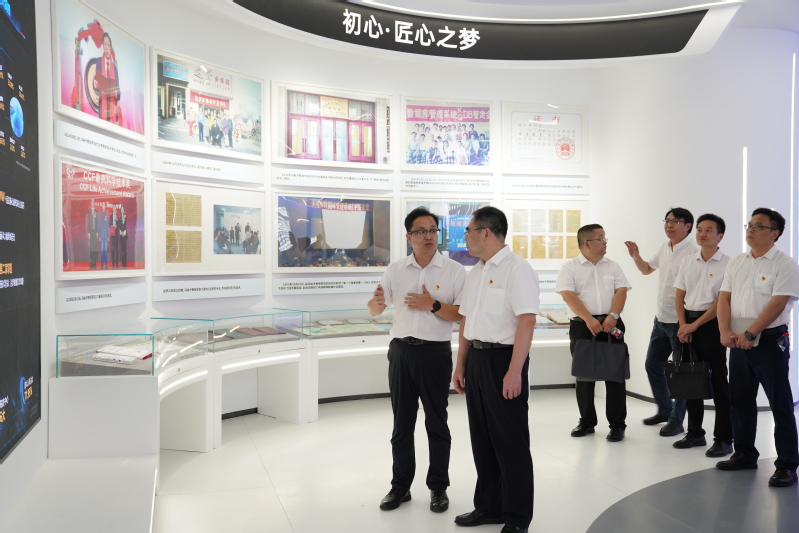 活动伊始,鄢烈洲和参加活动人员实地参观了达梦数据展厅,了解企业在数据库领域的技术发展脉络、核心产品竞争优势,以及党建工作与业务深度融合的特色成果。