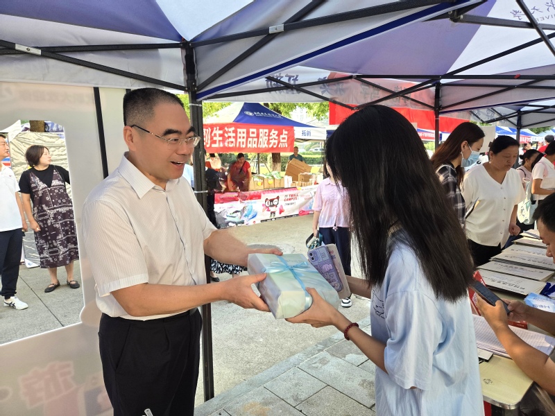 8日上午,学校党委书记鄢烈洲亲手递上印着校徽的专业书籍,并寄语新生“这是开启你们专业探索的‘启蒙之钥’,愿你们在书页间探寻学科真谛,找到心之所向,在世预赛录像回放扎根成长、积蓄力量”;学工处副处长夏挺带来装满笔记本、中性笔的“文具大礼包”,“希望从入校第一天起,你们能以笔为媒、以本为鉴,养成踏实记录、认真钻研的治学态度”;旅游学院院长蒋永业送上轻便的羽毛球拍,“大学时光既要在知识殿堂‘读万卷书’,也要在运动场上‘强健体魄’,愿你们在挥拍间释放活力,在运动中收获健康与友谊。”