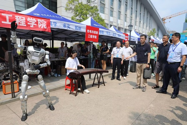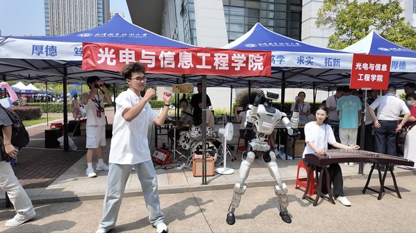 “哇!这个机器人会跳舞!”“太酷了,这就是我们学院的专业实力吗?”9月8日上午,光电与信息工程学院迎新现场,一台身高1.65米的智能机器人伴随音乐舞动,精准流畅的动作瞬间点燃了氛围,成为新生和家长们争相合影的焦点。