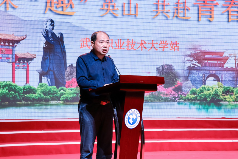 活动在热烈掌声中拉开帷幕。刁元斌代表学校对英山县领导与嘉宾的到来表示热烈欢迎。他指出,本次活动是深化职业教育与地方产业融合的生动实践,是推动人才培养与区域发展同频共振的重要举措。英山丰富的文旅资源为我校学子拓展了“第二课堂”,助力学生在实践场景中提升综合素质,增强服务现代产业的能力。