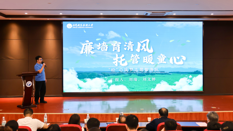 建筑工程学院“砼”心筑梦实践队负责人刘瑞带领团队以“九支笔七昼夜”在蔡甸区军民村完成26.68㎡主题墙绘,不仅让村路更显通透整洁,更把知识送到家门口,把廉政与安全的种子播进乡亲心田。刘文婷分享了发挥专业所长,为长城社区孩子打造“七彩假期”,以安全为底色、趣味添亮色,重收获成长的“金色印记”。