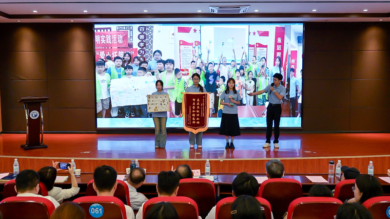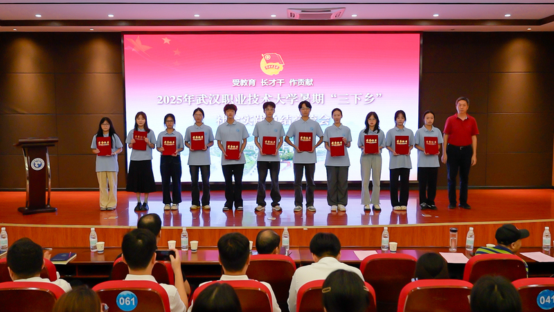 随后,学生工作处副处长夏挺宣读《关于表彰2025年暑期科技文化卫生“三下乡”社会实践活动先进集体和先进个人的决定》。获奖代表依次上台领奖,场内掌声不断。这掌声既是对他们辛勤付出与丰硕成果的肯定,更是一种激励与鞭策。