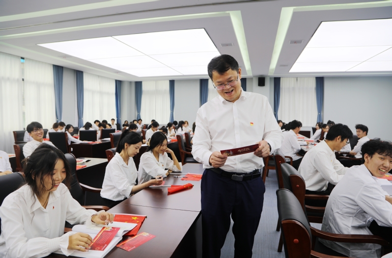 课程同步开展“与国同庆,与校同荣,与时代同行”主题活动。学员们通过手写寄语卡的形式,表达对祖国繁荣昌盛和学校事业发展的美好祝愿。何保华走到学员中间,与大家亲切交流学习体会。学员们表示,将珍惜学习机会,心系国家发展,提升理论素养,锤炼实干本领,把个人成长融入民族复兴伟业,在中国式现代化建设中书写青春篇章。
