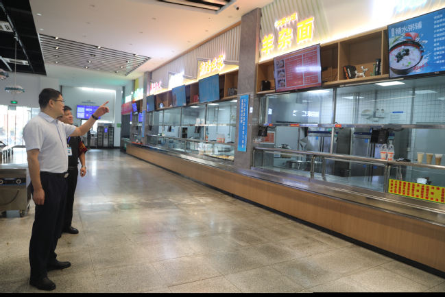 检查组一行先后前往光谷校区监控室(110指挥中心)、校园出入口、东三食堂、笃学社区及学校总值班室等重点场所,逐项核查校园安全管理落实情况。在监控室,何保华仔细查看视频监控覆盖范围与实时运行状态,要求保卫处紧盯重点区域,确保应急响应快速高效;在校园大门,他详细询问外来人员登记流程、车辆进出管控措施,强调要筑牢校园安全“第一道防线”;在东三食堂,他仔细检查食材储存、餐具消毒及食品留样管理等工作,叮嘱食堂工作人员严格把控饮食安全,保障师生假期用餐品质;在总值班室,他认真查阅值班记录台账,要求值班人员严格执行24小时在岗制度,确保各类突发情况及时处置、高效反馈。每到一处,何保华均认真听取点位负责人工作汇报,针对检查中发现的问题现场提出整改要求,对工作推进中遇到的困难逐一协调解决,确保假期校园安全管理无死角、无漏洞。
