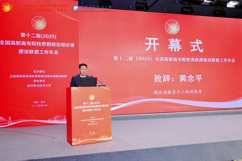 黄念平在致辞中向全国思政教育战线工作者致以崇高敬意,他指出,当前湖北正全力推进教育强省建设,加快打造东部地区教育对外开放高地,希望职业院校始终以习近平新时代中国特色社会主义思想为指导,充分发挥职业教育特色优势、打造思政教育品牌,加强统筹谋划、凝聚发展合力,把握思政教育改革创新机遇,为教育强国建设贡献更多职教力量。