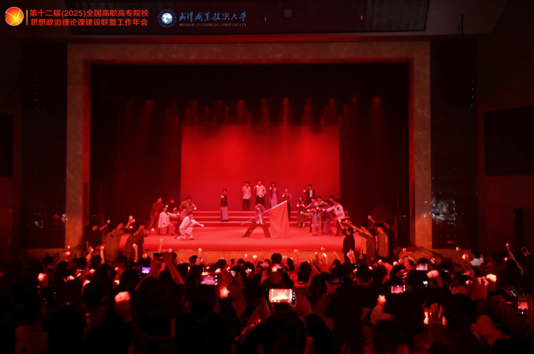年会期间,全体参会人员还前往足球直播德礼堂,共同参与“同上一堂大思政课”活动,由湖北艺术职业学院与足球直播联合打造的思政舞台剧《风云武汉》精彩上演,该剧以烽火岁月为背景,通过情景再现、角色扮演、互动体验等形式,打破传统党课单向灌输模式,让观众沉浸式感受历史事件与革命精神,演出结束后,参会思政课教师仍沉浸其中,反响热烈。