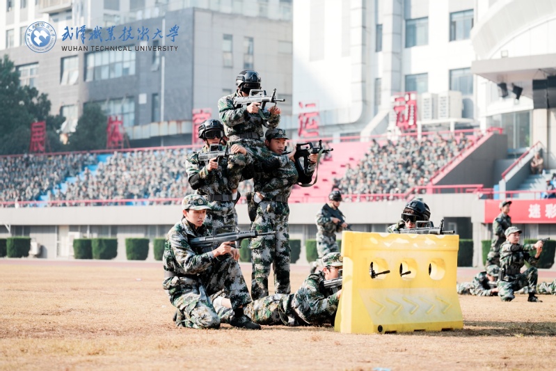军事课目表演将现场气氛瞬间点燃:擒敌拳方阵拳风凌厉,步法沉稳;承训教官的摔擒表演招招精准,尽显军人血性;匕首操方阵动作干净利落,气势如虹、英姿飒爽;刺杀操方阵则突刺迅猛,杀声震天,威武豪迈。压轴的战术综合演练高度模拟实战,队员们穿越障碍、协同突击,展现出扎实的单兵素养与高效的团队协作。一幕幕精彩瞬间赢得现场阵阵掌声,充分彰显了13天军训实效。