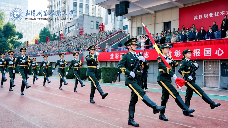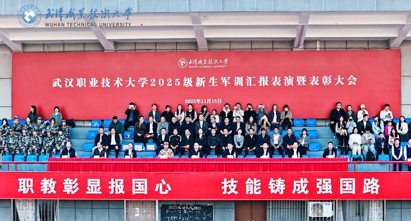 全体校领导出席典礼,来自武警湖北总队武汉支队的全体承训教官与学校相关职能部门负责人、二级学院党委副书记、全体新生辅导员及师生代表齐聚现场,共同见证这场青春与汗水交织的成长盛宴。大会由学生工作处处长陶舒主持。