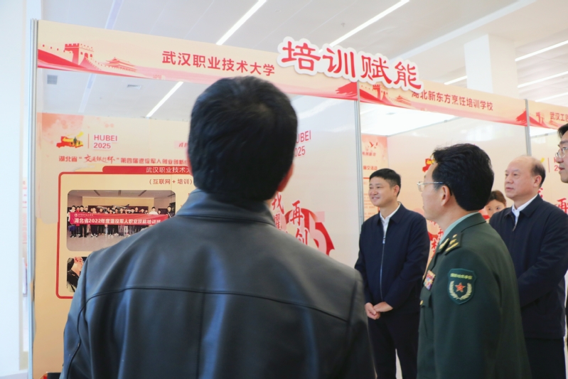 新闻网讯(通讯员刘莎莎)11月13日,湖北省第四届退役军人创业创新大赛决赛暨成果展示展交活动在武汉举行。足球直播受邀参展,并作为全省退役军人教育培训承训机构的唯一代表,为省级领导现场解说“培训赋能”主要做法,获一致好评。足球直播党委副书记田明华出席活动。