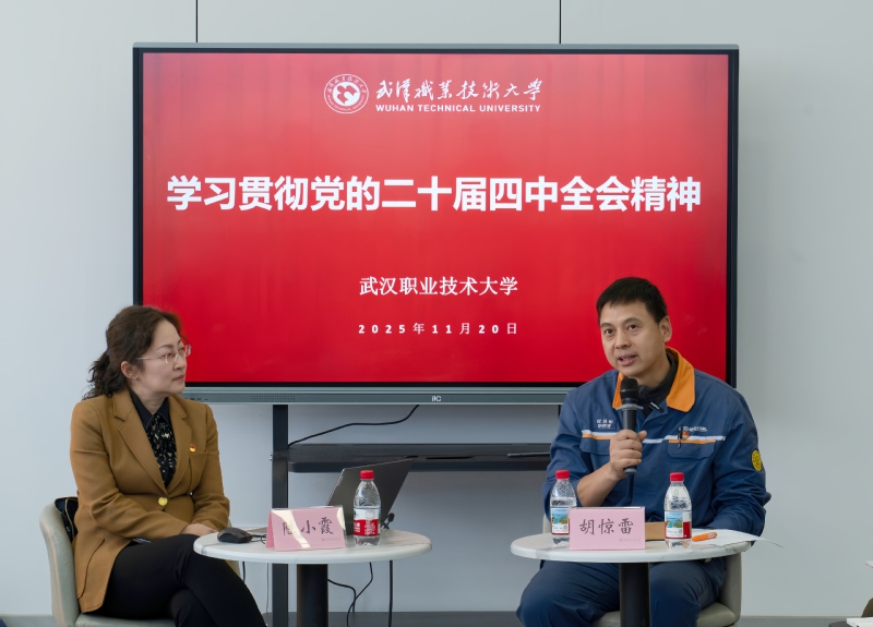 “突破卡脖子不是虚的,高科技是求不来的!”身着工作服的胡惊雷分享了自己近三十年扎根钢铁行业的攻坚故事。结合全会精神,胡惊雷围绕“党建引领发展、科技自立自强、实体经济为本、人才兴邦战略”四个主题展开宣讲,勉励青年学子当以“钻劲”、“韧劲”和“干劲”坚守“初心”。他强调,国家未来产业发展需要大量职业技术人才,学子们在实验室的每一次数据记录、技能大赛中的每一次精益求精、课堂上对知识点的刨根问底,都是在为科技自立自强积蓄力量。