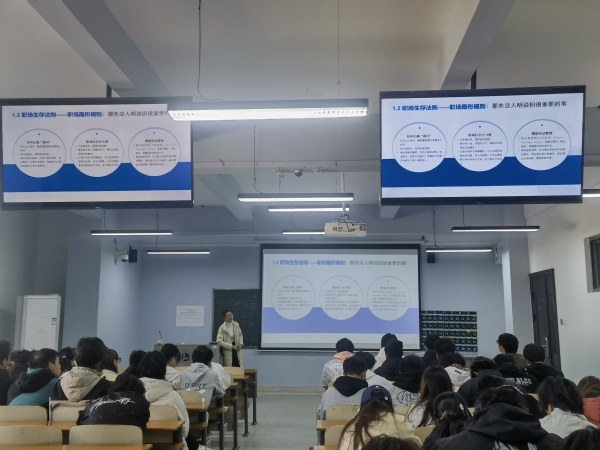 11月21日,“韧性生涯启航”活动在凌曦楼C4002如期举行,嘉环科技股份有限公司武汉分公司解决方案经理罗斌受邀授课。她结合真实职场案例,细致传递职场“抗压秘籍”。从加班应对技巧到沟通冲突化解,干货满满的分享让大家直呼“比课本更解渴”!