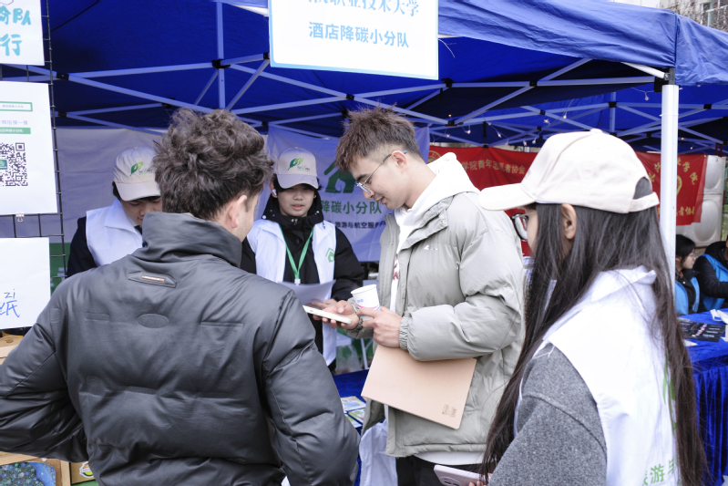 活动期间,酒店降碳小分队的摊位前始终人头攒动。截至18时活动闭市,累计吸引千余名师生参与,发放宣传资料800余份,收集观众反馈200余条,不少高校志愿团队也前来交流学习,形成了良好的示范效应。