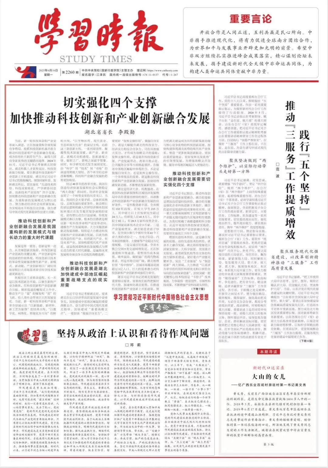 当前,新一轮科技革命和产业变革深入演进,正在加速重构全球发展竞争格局。抢抓科技创新机遇并着力推动科技创新和产业创新融合发展,成为培育壮大新质生产力、赢得大国竞争新优势的关键路径选择。2024年11月,习近平总书记考察湖北时指出,湖北科教人才优势突出、科技创新能力较强,要在推进科技创新和产业创新上开拓进取。湖北牢记习近平总书记的殷殷嘱托,围绕国家所需、发挥湖北所长,切实强化“先进技术供给、科技成果转化、产学研协同创新、高新技术产业培育”四个支撑,加快推动科技创新和产业创新融合发展,为重构新的发展模式与增长动力、努力推动经济社会高质量发展,为实现高水平科技自立自强、奋力谱写中国式现代化新篇章作出更大贡献。