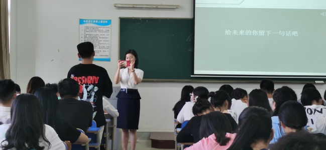 在同学们分享自己给未来的信时,刘梦老师拿起手机录制下来,说:“这是他们现在说给未来的话,我记录下来,等毕业的时候再送给他们。”