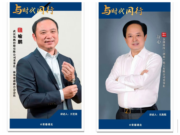《与时代同行》栏目海报(左一为楚商喻鹏,讲述人万芝佳; 右一为楚商舒心,讲述人凡凯歌)