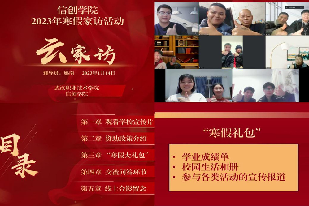 一次次爱与爱的联手,一场场心与心的交融。2023年寒假,信创学院全体辅导员、班主任以“云端”相见的方式进行了线上家访,教师与家长、学生点对点沟通、面对面对话,将关爱和温暖送到每个家庭,串联起家校协同育人合力。