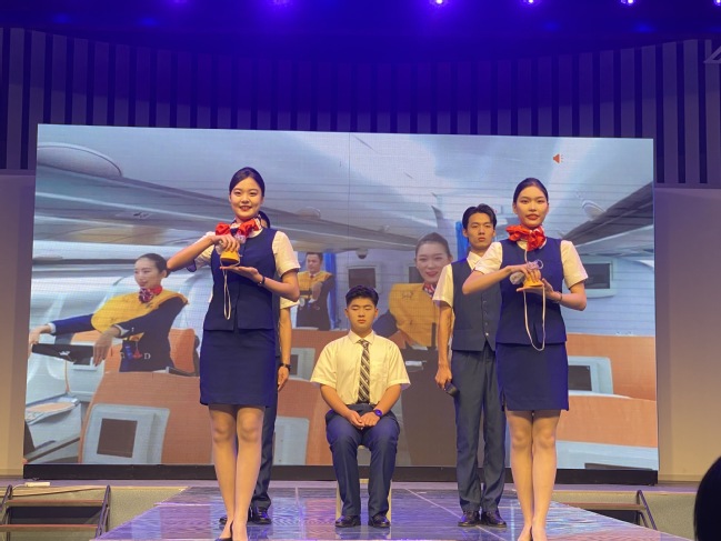 周雷卉子(前排右一)获第十二届全国高等学校民航服务技能大赛“形象大使”荣誉称号