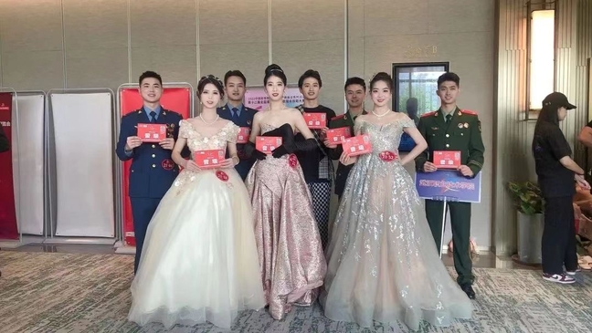 2022年6月2日,周雷卉子(前排左一)参加“妆饰自己,点亮职场校园职妆”大赛