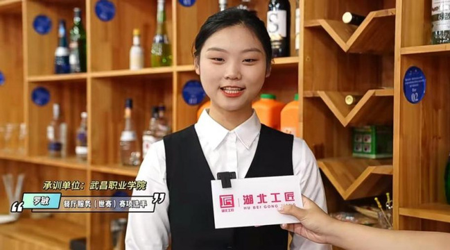 满怀激情踏上新征程, 她提醒自己一定要吸取上次比赛的经验教训。经过不懈努力和细心准备,她终于迎来高光时刻——在第二届全国乡村振兴职业技能大赛湖北省选拔赛餐厅服务赛项中荣获金牌,并成功晋级国赛。